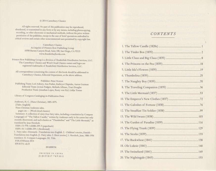 Hans Christian Andersen: Tales, Word Cloud Classics, San Diego 2014.