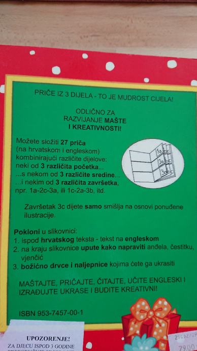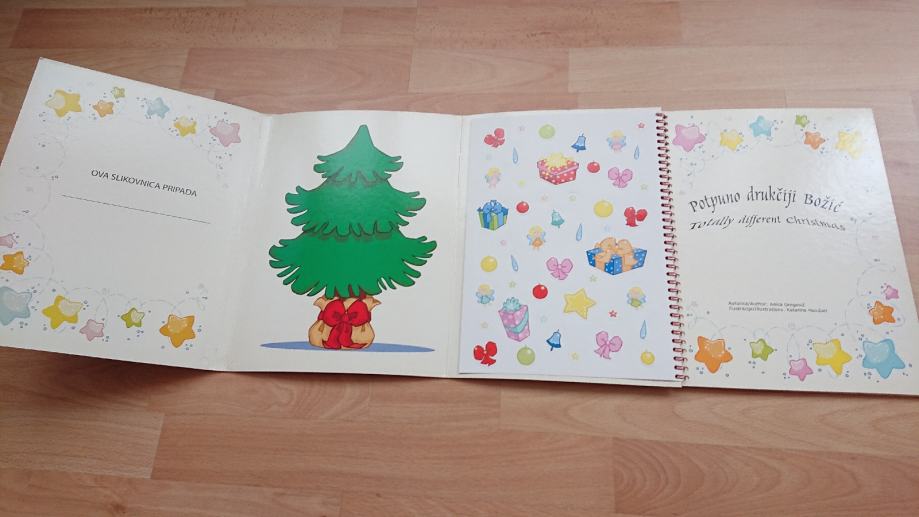 2. Potpuno drukčiji Božić / Totally different Christmas - Uz ovu slikovnicu u kojoj dijete razvija maštu i kreativnost na poklon dobivate: ispod hrvatskog teksta - tekst na engleskom, upute za izradu papirnatih anđela, čestitke i vjenčića, sliku božićnog drvca i naljepnice kojima ćete ga ukrasiti!