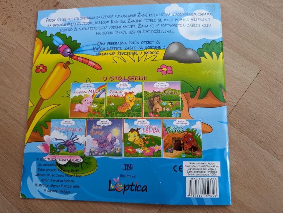 Žabica Žana - Pridruži se pustolovinama dražesne punoglavke Žane koja uživa u podvodnim igrama sa svojom prijateljicom, ribicom Karlom. Žanino tijelo se malo-pomalo mijenja i uskoro će napustiti svoj vodeni svijet. Žana će se pretvoriti u žabicu koju na kopnu čekaju uzbudljivi doživljaji. Potražite i ostale slikovnice iz serije koja djeci otkriva zašto su korisne i najmanje životinje u prirodi!