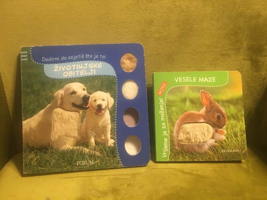 3. Slikovnice dodirni i osjeti - Slikovnice iz serijala Dodirni i osjeti, sadrže fotografije životinja popraćene kratkim tekstom. Na svakoj fotografiji životinje uklopljen je okrugli uzorak ispunjen tkaninom koja nas svojom teksturom podsjeća na perje ili krzno određene životinje. - komad 20 kn