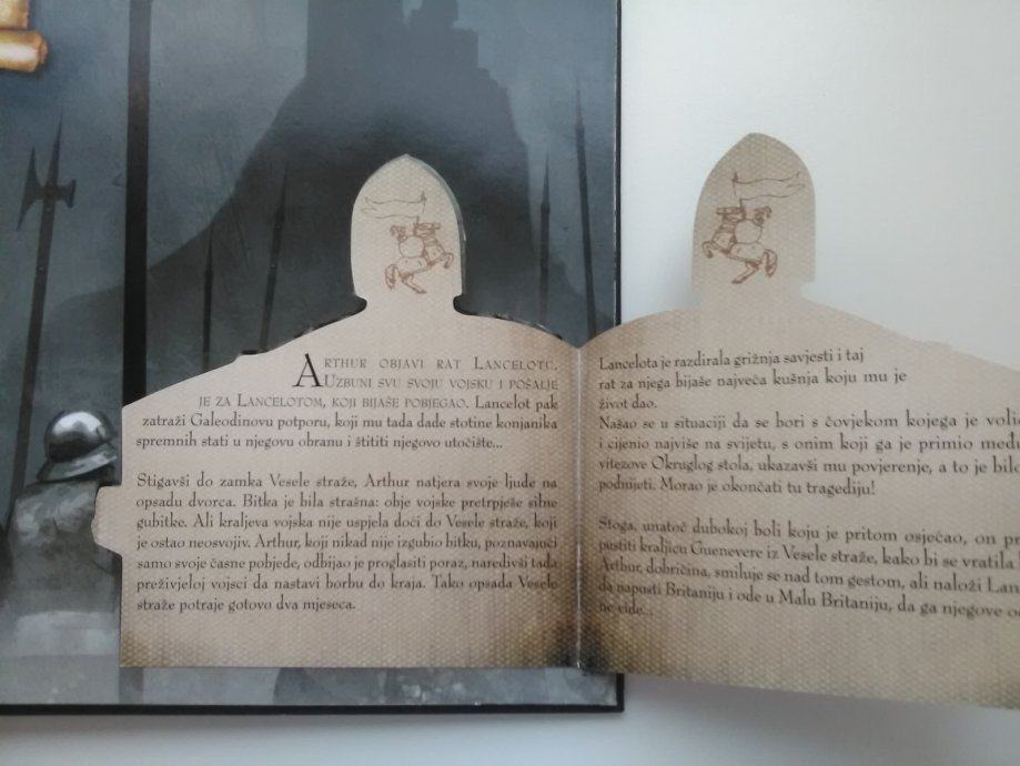 "Kralj Arthur, nevjerojatne legende", tekst Ariane Bilheran, ilustracije Benjamin Carre, prevela Ivana Barišić Oharek, 30 str., Lusio, Zagreb, 2011., tvrdi uvez, stanje 10/10, opremljeno tzv. pop-up elementima, skočislikama, listićima na otvaranje unutar listova...