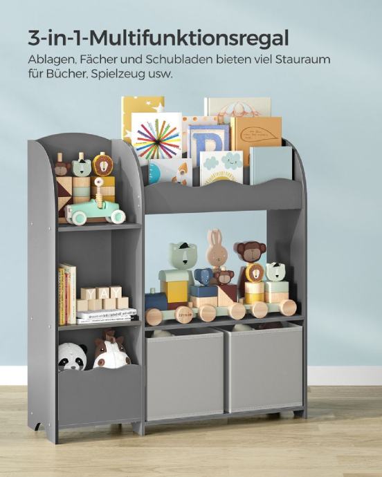 Organizator igračaka i knjiga za djecu, višenamjenska jedinica za pohranu s 2 kutije za pohranu, veliki kapacitet, univerzalna tema, za igraonicu, spavaću sobu, dnevnu sobu,