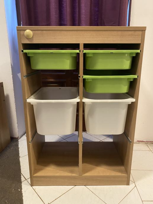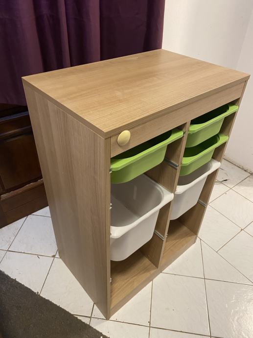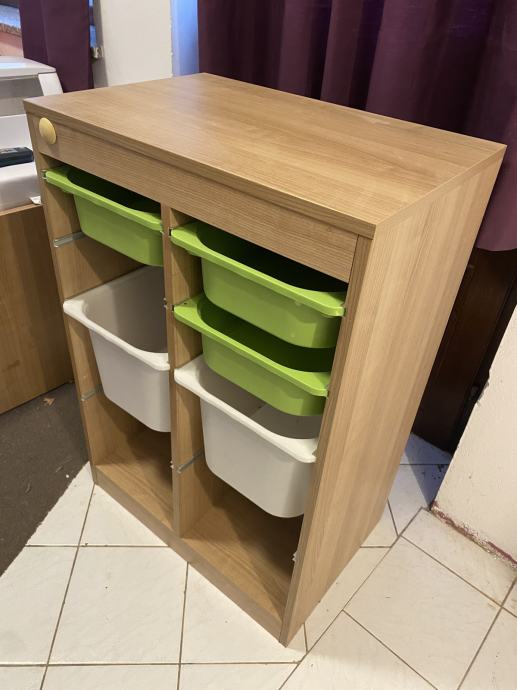Element za odlaganje igračke sa plastičnim kutijama.