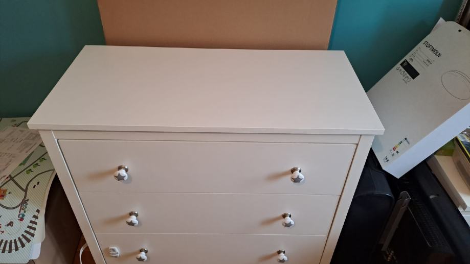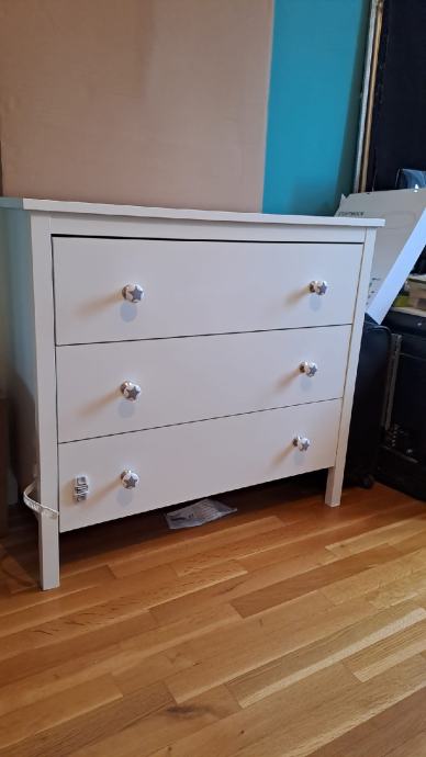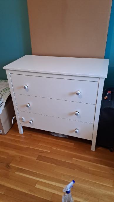 Očuvana komoda Hemnes kupljena u IKEI. Nove ručkice.