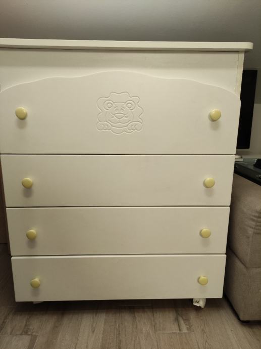 Prodajem očuvan ormarić za bebe s motivom lavića.