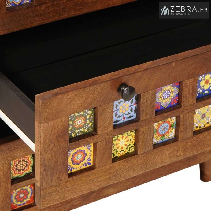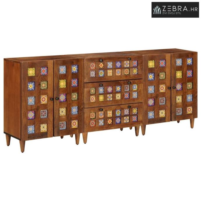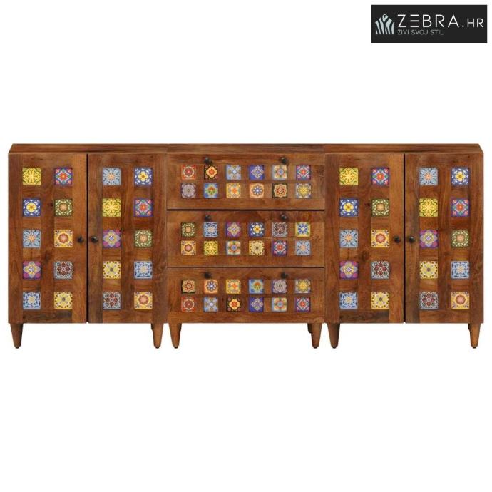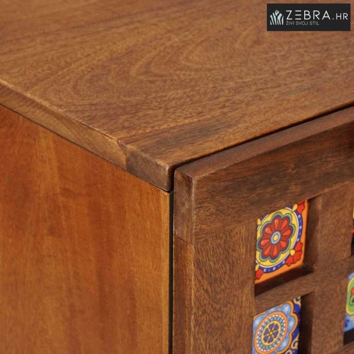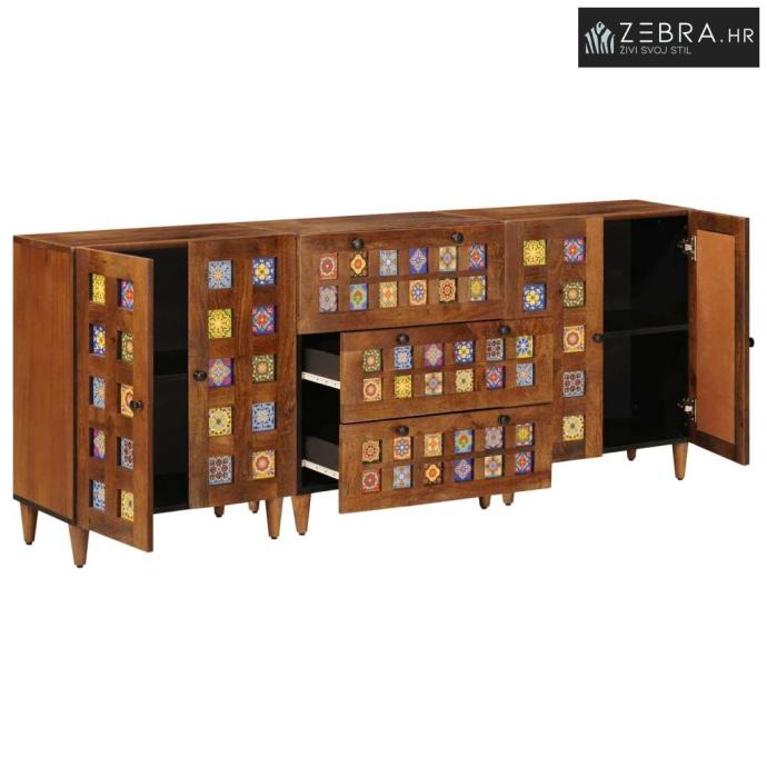 Visokokvalitetni materijali: Ova komoda, izrađena od masivnog drveta manga i konstruiranog drveta, nudi odličnu kombinaciju izdržljivosti i privlačnosti. Ovaj materijal jamči dugotrajnost i otpornost na habanje, čineći je pouzdanim komadom za svaku blagovaonicu ili dnevni boravak. Masivna drvena konstrukcija dodaje klasičan, ali i moderni ugođaj, unapređujući vašu unutarnju dekoraciju.