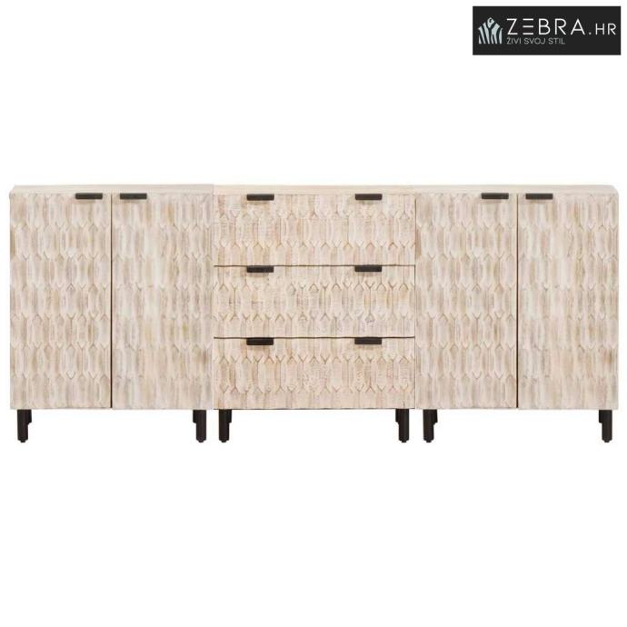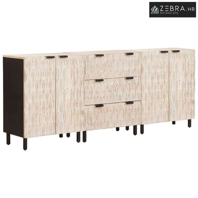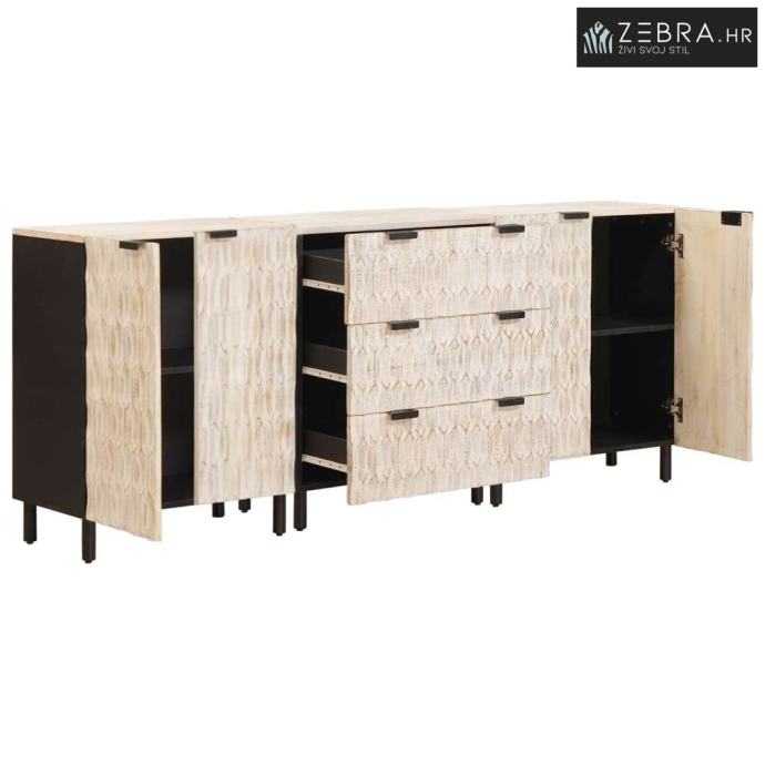 Premium materijal: Ovaj sideboard je izrađen od čvrstog drva manga, koje ne samo da daje toplinu i bezvremenski izgled, već jamči i snagu i izdržljivost. Drvo manga je poznato po svojoj robusnosti, čineći ga pouzdanim materijalom za namještaj koji se koristi svaki dan, dok nudi luksuzan i sofisticiran izgled koji obogaćuje svaku prostoriju.