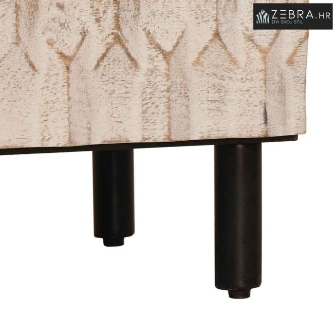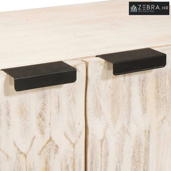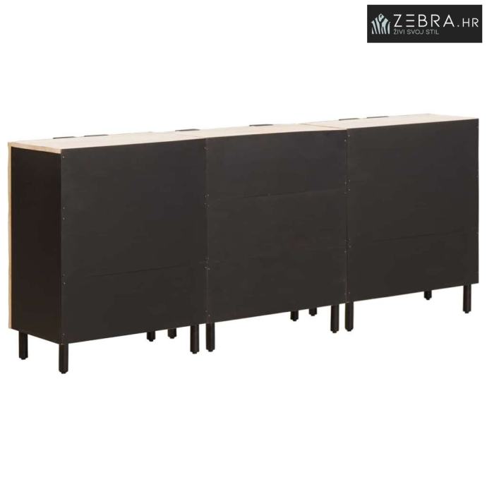 Metalne noge: Sideboard stoji čvrsto i stabilno zahvaljujući crnim metalnim nogama, pružajući mu otpornu strukturu na svakodnevno trošenje. Metal dodaje dašak industrijskog chic stila toploj drvenoj površini, stvarajući zanimljivu igru tekstura i boja, što obogaćuje stil i ravnotežu.