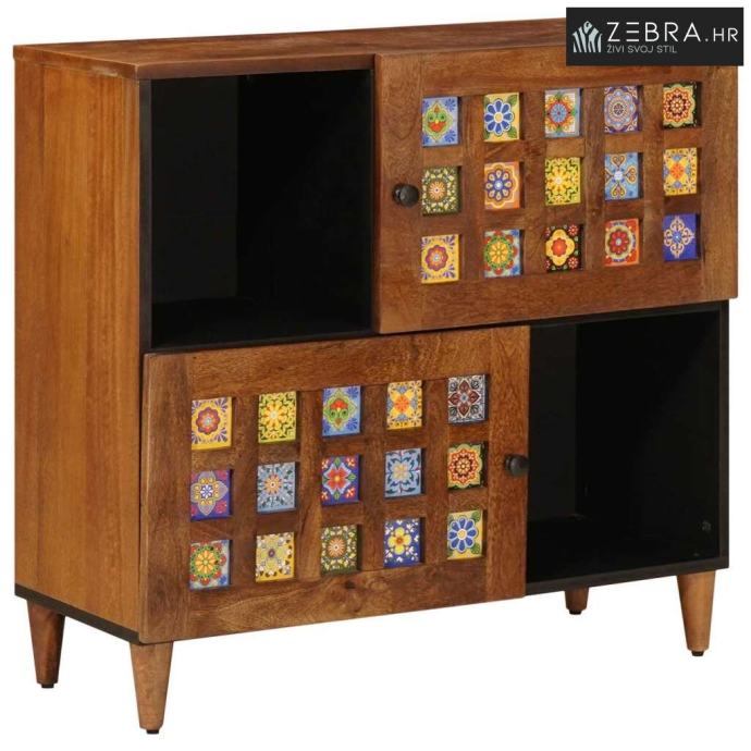 Masivno drvo manga: Ovaj sideboard je izrađen od čvrstog okvira od masivnog drveta manga, što garantira dugovječnost uz prirodan, elegantan izgled. Ovaj materijal osigurava da sideboard izdrži svakodnevnu upotrebu i zadrži atraktivan izgled.