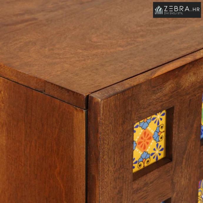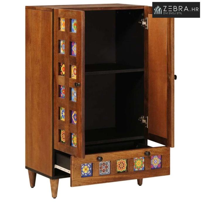 Materijali: Napravljen od kvalitetnog masivnog drva manga, poznatog po svojoj čvrstoći i lijepoj zrnatoj strukturi, uz dodatak MDF-a za stabilnost. Ovaj odabir povećava izdržljivost highboarda i naglašava njegov privlačan izgled, lako se uklapa s drugim namještajem.