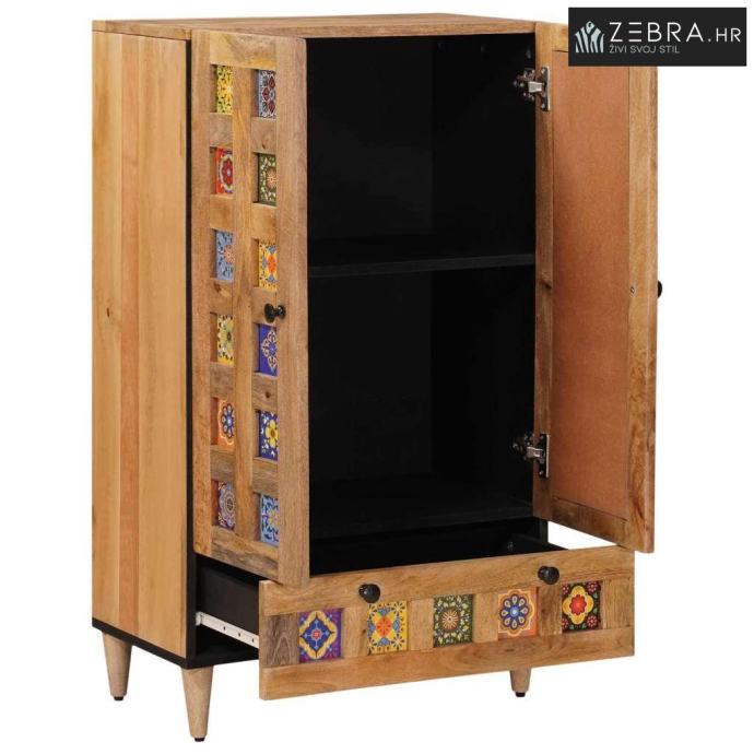 Materijali: Izrađen od prekrasnog masivnog drveta manga, poznatog po svojoj čvrstoći i zrnatoj strukturi, uz dodatak MDF-a za stabilnost. Ova kombinacija ne samo da osigurava izdržljivost highboarda, već i naglašava njegov vizualno privlačan izgled, savršeno se uklapajući s drugim komadima namještaja.