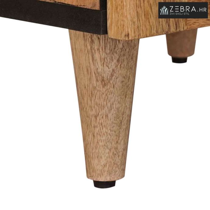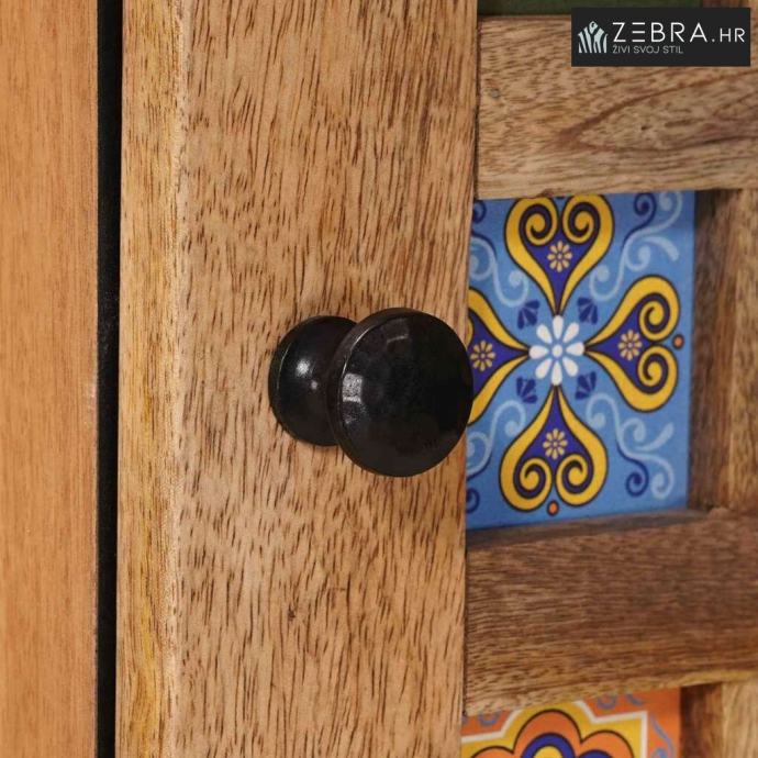 Funkcionalne komponente: Vratne šarke otvaraju prostrane odjeljke, dok kvadratne drvene noge osiguravaju čvrstoću. Ručke s gumbima omogućuju jednostavno korištenje i uklapaju se u cjelokupan elegantni dizajn.