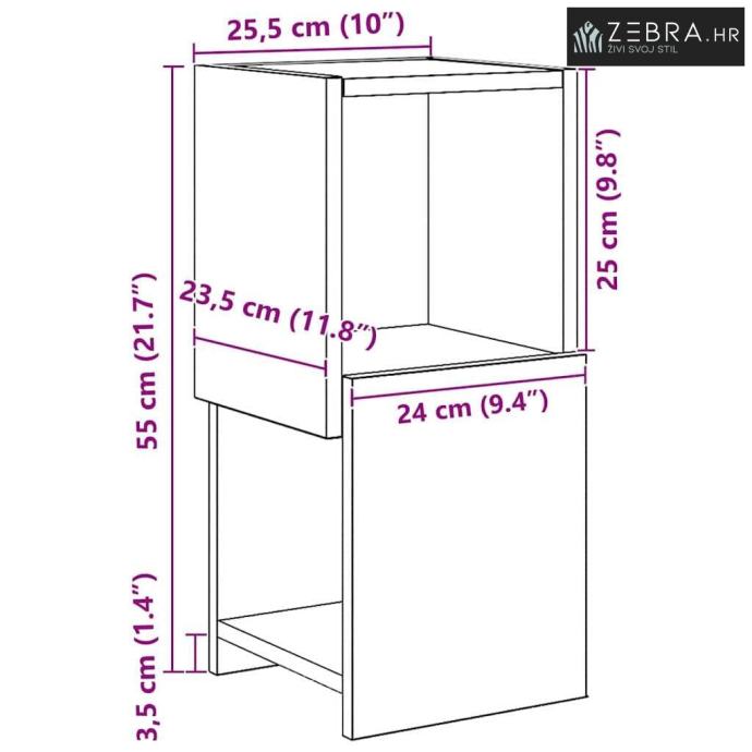 Sveukupne dimenzije: 25,5 x 25 x 55 cm (D x Š x V)