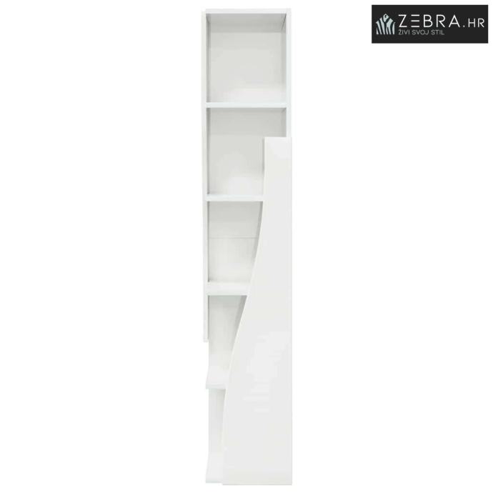 Konstrukcija od konstruiranog drva: Ova komoda je od čvrstog i dugotrajnog konstruiranog drva. Održava svoj izgled i izdržava vrijeme. Neutralne tonove lako uklapate u razne stilove interijera. Kutne police koje štede prostor: Posebno dizajnirane da se odlično uklape u kutove, maksimalno koriste raspoloživi prostor za pohranu. Idealne su za knjige, ukrase ili svakodnevne potrepštine. Ovaj pametan dizajn osigurava praktičnost i dobar izgled. Funkcionalne opcije pohrane: Ima više odjeljaka za pohranu koji pružaju obilje prostora za organizaciju. Savršena je za one koji žele stil i funkcionalnost u svom namještaju. Minimalistička završna obrada: Njena mat površina doprinosi modernom izgledu. Ova komoda se lijepo uklapa u svaki dekor i poboljšava vašu prostoriju. Jednostavna završna obrada ostaje privlačna i dugotrajna. Jednostavne upute za njegu: Održavanje je lako. Samo obrišite vlažnom krpom, a za dodatnu sigurnost, pričvrstite je za zid kako biste spriječili prevrtanje. Ovaj jednostavan pristup održavanju čini komodu praktičnim izborom.” Boja: Bijelo