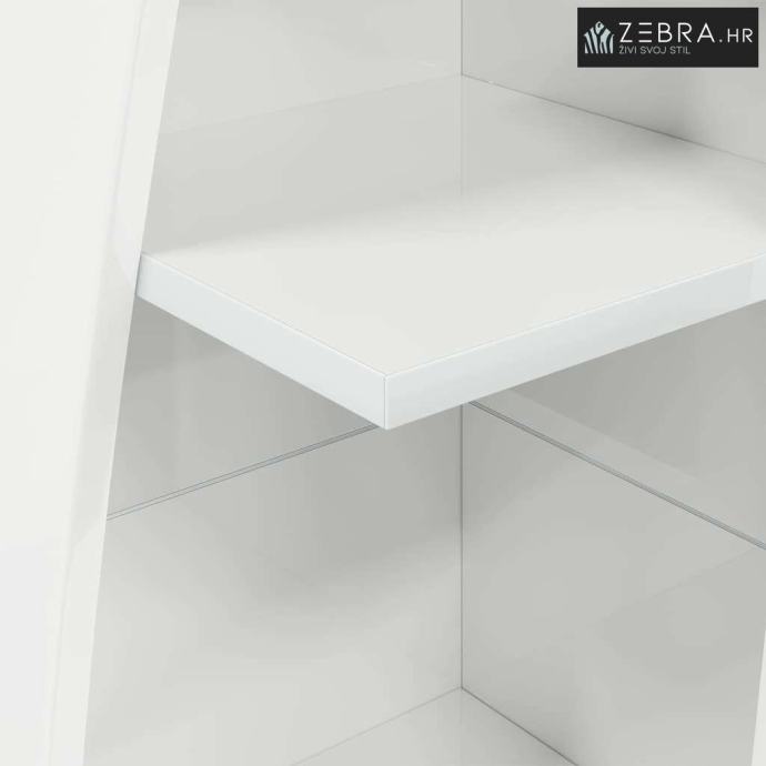 Ova moderna kutna komoda sjajno kombinira stil i praktična rješenja za pohranu. Elegantan dizajn savršeno se uklapa u kutove prostorije, koristeći prostor koji inače ostaje prazan. Minimalistički stil je idealan za moderne dnevne sobe, a višestruke police omogućuju organizaciju i pohranu raznih stvari.