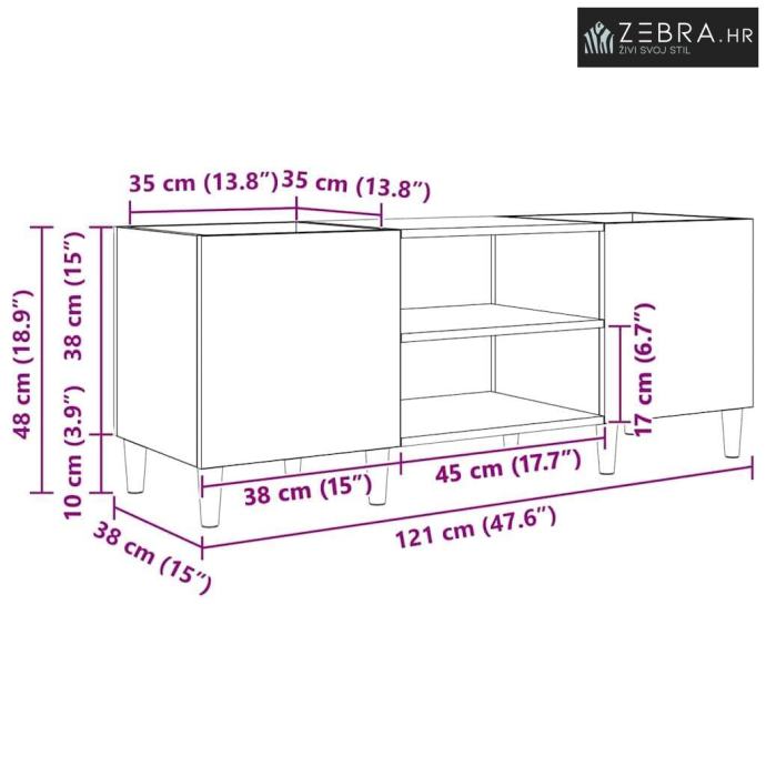 Materijal od konstruiranog drva Ovaj kabinet za ploče izrađen je od kvalitetnog konstruiranog drva, pružajući robusnu strukturu koja podržava brojne vinile. Konstruirano drvo osigurava da kabinet može podnijeti više mase nego obične drvene varijante. Biranje ovog materijala nudi glatku pozadinu i police, što poboljšava cjelokupan izgled i funkcionalnost vašeg prostora. Ugrađene police S ugrađenim policama, kabinet eliminira potrebu za dodatnim rješenjima za pohranu. Police su pažljivo integrirane u okvir, održavajući elegantne linije i omogućavajući da pohrana izgleda besprijekorno u vašem dnevnom boravku. Svaka polica je osmišljena da sigurno drži više ploča, sprječavajući njihovo prevrtanje ili oštećenje. Sustav vrata s šarkama Kabinet ima sustav vrata s šarkama, olakšavajući pristup dok vaša kolekcija ostaje zaštićena od prašine. Vrata s šarkama pružaju pouzdanu mehaniku otvaranja, omogućujući nježno zatvaranje kako bi se štitila površina kabineta. Ova funkcija poboljšava elegantan izgled vašeg rješenja za pohranu i osigurava sigurnost predmeta unutar. Prostrana pohrana Ovaj kabinet je prvenstveno dizajniran za smještaj velikih kolekcija glazbe. Prostrano unutrašnjost kabineta je ključna značajka. Ima kapacitet koji zadovoljava iskusne kolekcionare vinila, pomažući u organizaciji, razvrstavanju i lakom pronalaženju određenih ploča, optimizirajući iskustvo skladištenja vaše glazbene biblioteke. Praktične upute za njegu Kako bi se produžila trajnost, kabinet treba brisati vlažnom krpom da bi se zadržao njegov izgled. Sastavljanje zahtijeva dvije osobe s odvijačem, naglašavajući važnost pravog pričvršćivanja na zid kako bi se spriječilo prevrtanje u aktivnom okruženju. Ovaj pristup produžava život i stabilnost vaše investicije. Boja: Crni hrast