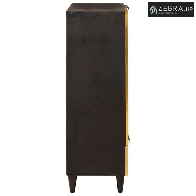 Materijali: Ovaj drveni bočni ormarić je od čvrstog manga drva, poznatog po svojoj snazi i izdržljivosti. Osigurava stabilnu osnovu, uz predivan prirodan finiš. Konstruirano drvo dodatno jača dizajn, osiguravajući čvrstu potporu i klasičan izgled. Uključeni dijelovi: Dolazi s flush vratima za glatku površinu i čvrstim ručkama koje dodaju stilski naglasak. Ručke s zlatnim finišem savršeno se ističu na crnoj površini, unapređujući suvremeni izgled ormarića. Karakteristike / Funkcija / Dizajn: Ovaj bočni ormarić nudi obilje pohrane s pametno dizajniranim odjeljcima koji olakšavaju organizaciju. Idealno je rješenje za pohranu knjiga, gadgeta ili svakodnevnih potrepština, a suvremen dizajn flush vrata osigurava elegantan izgled dok skriva sadržaj iz vida. Preporučene upotrebe: Namijenjen unutarnjim prostorima, posebno dnevnim sobama, ovaj chic ormarić zadovoljava razne potrebe pohrane. Njegova kompaktnost savršena je za manje domove, pomažući ti da pametno iskoristiš prostor bez kompromisa na stilu – savršeno za gradske stanovnike ili minimaliste. Održavanje: Redovito prašenje mekom, suhom krpom pomaže u očuvanju vrhunskog stanja ormarića. Za tvrdokorniju prljavštinu, samo ga nježno obriši malo vlažnom krpom – nema potrebe za jakim kemikalijama. Zaštiti drvo izbjegavanjem viška vlage, kako bi duže izgledalo lijepo. Boja: Crna i zlatna