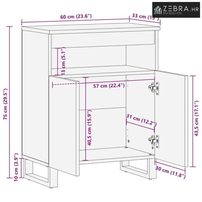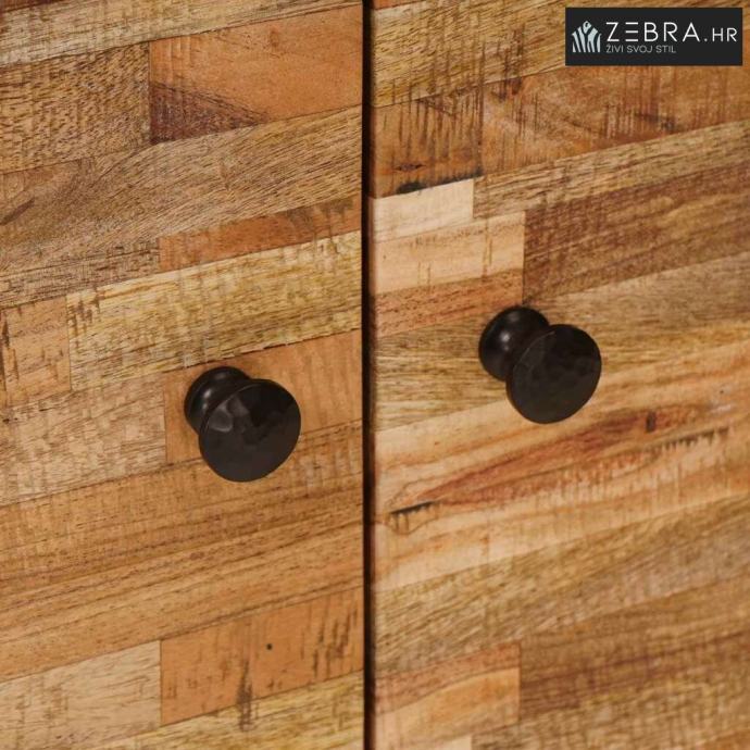 Kvalitetni materijali Izrađen od masivnog drveta manga, ovaj ormar je dizajniran da traje i da izgleda dobro. Prirodna tekstura drveta donosi rustičan šarm i jamči pouzdanost kroz dugotrajnu upotrebu. Mango drvo je poznato po svojoj snazi, dajući čvrstoću ormaru koji prolazi test vremena, osiguravajući dugoročan dodatak svakom prostoru.