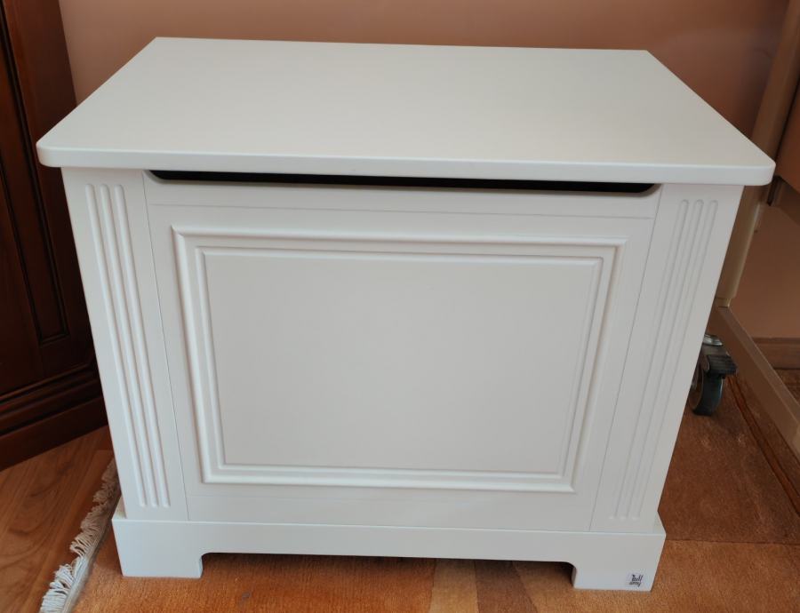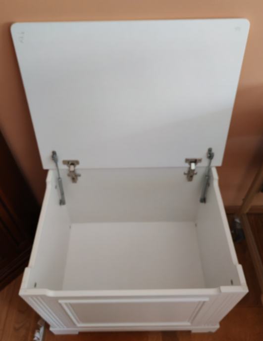 Prodajem sanduk za igračke ili druge potrepštine branda Bellamy. Dimenzije 68 x 50 x 55 (visina) cm. Siguran sistem zatvaranja poklopca. Izrađen od visokokvalitetnog MDF-a, ivory- bijela boja. Kao nov, bez ikakvih ogrebotina ili oštećenja.