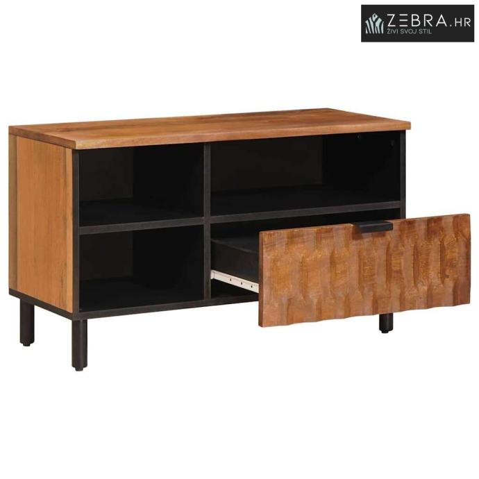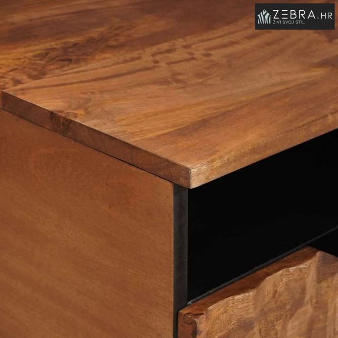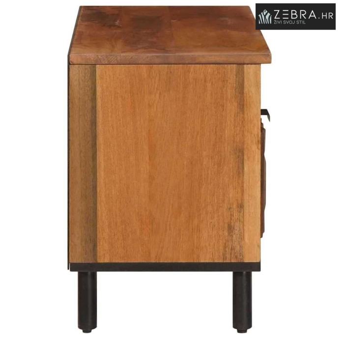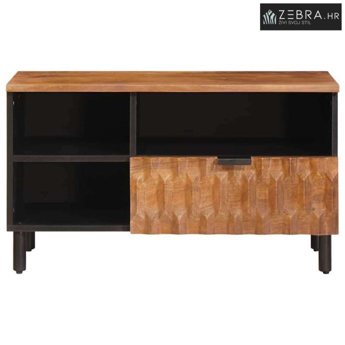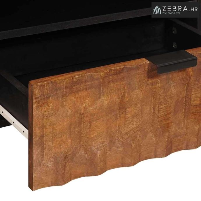 Materijali: Ova TV komoda je napravljena od masivnog drveta manga, birana zbog svoje jačine i dugovječnosti. Ovo prirodno drvo savršeno se uklapa u moderni namještaj, osiguravajući dugotrajnu kvalitetu. Uključuju se i dijelovi od konstruiranog drva za dodatnu stabilnost bez previše težine, održavajući balans između robusnosti i lakog pomicanja.