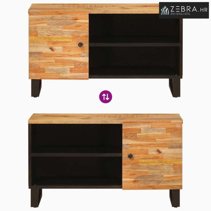 Majstorija od drva manga: Kabinet je izrađen od masivnog drva manga, poznatog po svojoj čvrstoći i jedinstvenim uzorcima zrna koji donose toplinu i eleganciju. Ovaj materijal osigurava dugotrajnost i daje bogat vizualni dojam kao središnji komad u dnevnoj sobi.