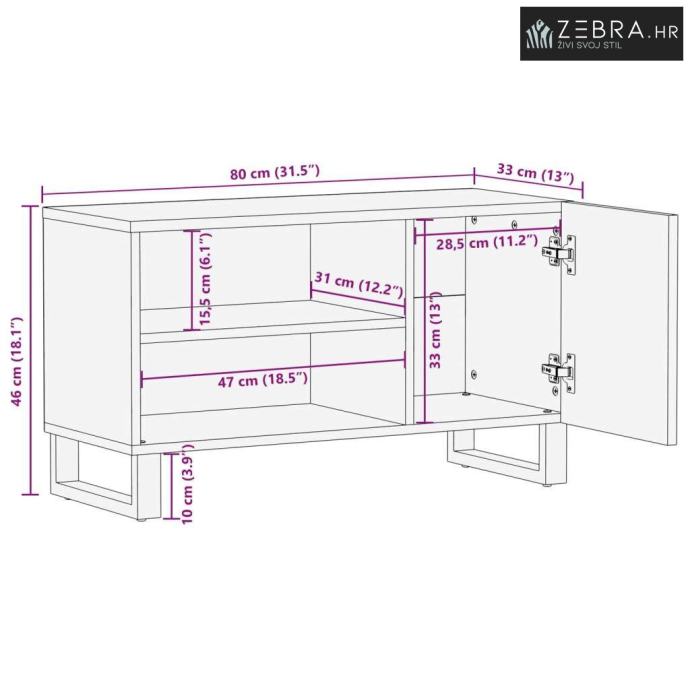 Sveukupne dimenzije: 80 x 31,5 x 46 cm (Š x Dub x V)
