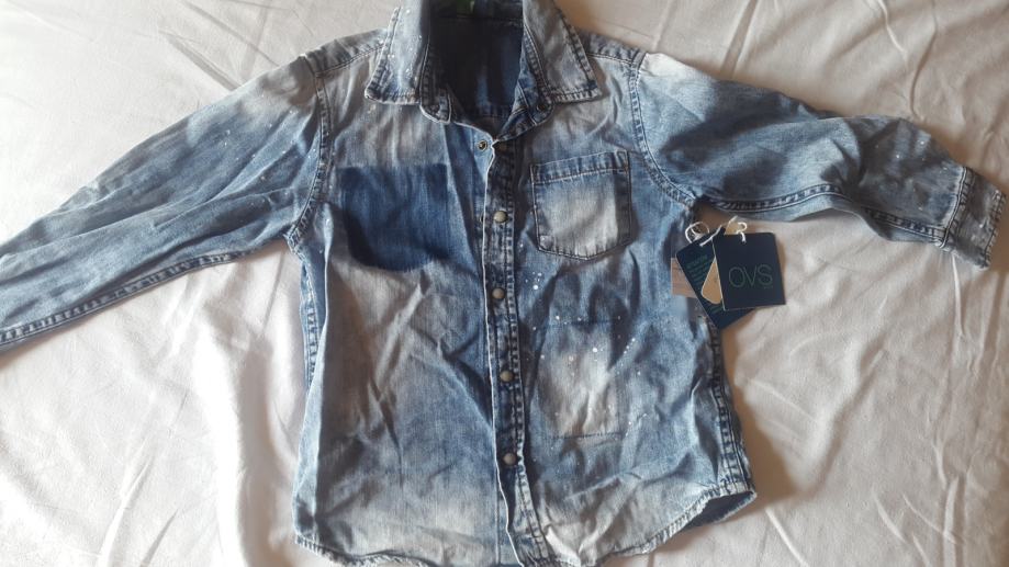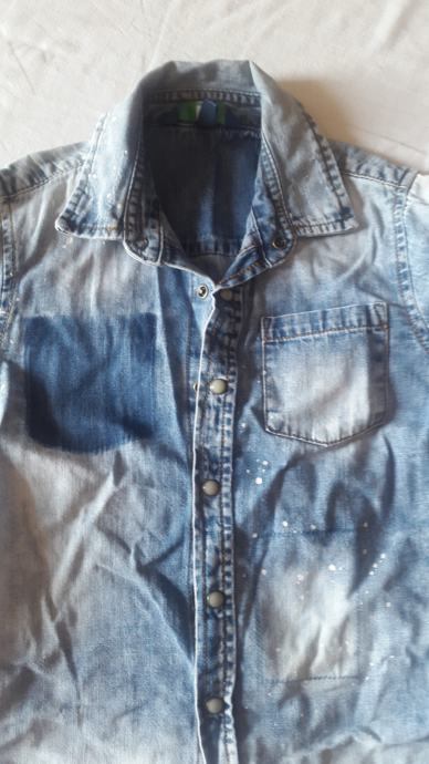 Dječja traper košulja. Veličina 110. Brand Oviesse. Kopčanje na drukere. Efekt isprane i poprskane košulje. Super za male frajere. Jako dobro očuvana bez flekica (osim onih koje su s košuljom došle :) ) i oštećenja.