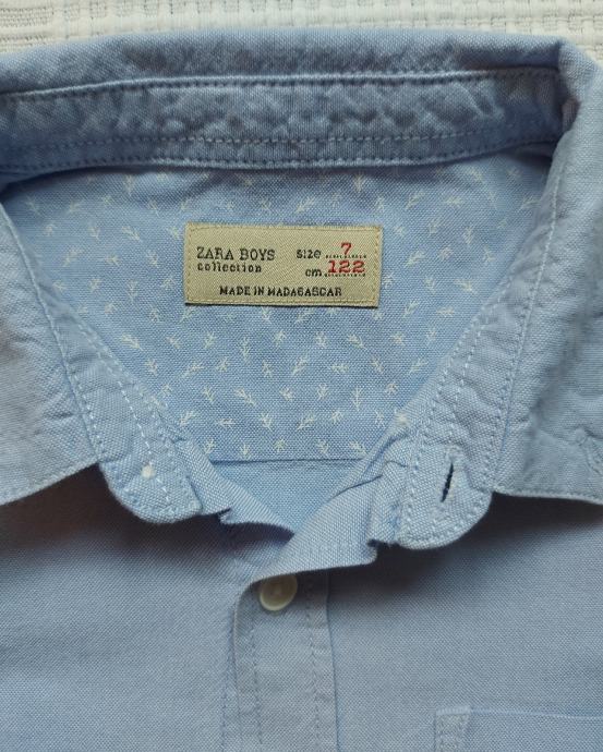 Svjetlo plava Zara košulja za dječake. U odličnom stanju. Velicina 7 tj.122. Duzina 47 cm,obujam 76cm,dugi rukav duzine 42 cm.zvati 0996623813