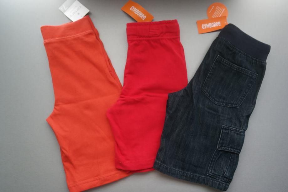 Lot kratkih hlačica za dečke, narančaste Carters, crvene i traper cargo Gymboree, sve veličina 7 godina, pamuk 100% i nove s etiketom