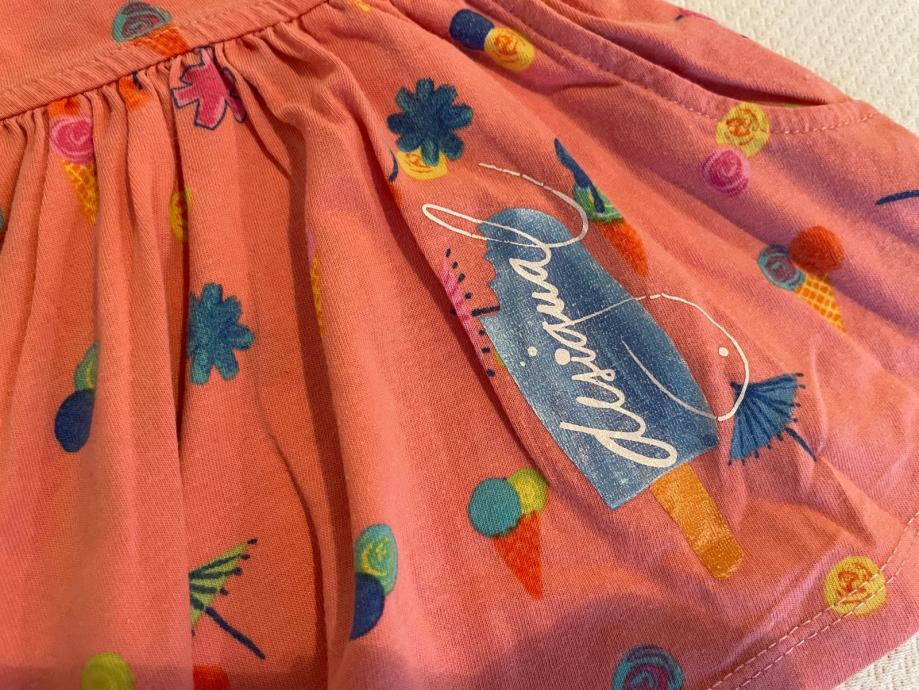 Djecje hlacice jako slatke i zanimljive kao suknjica, jako lijepo stoje. Velicina 7-8 ali vitkije curice mogu nositi 2-3 ljeta…
