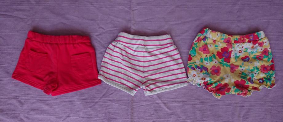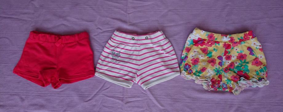 Ljetne kratke hlače za curice br. 92, lot od 3 komada, očuvane, nosive i duže, dužina cca 18-19cm, širina u struku cca 21-22cm. Sve troje jako lijepo stoje, pamučne su i ugodne.