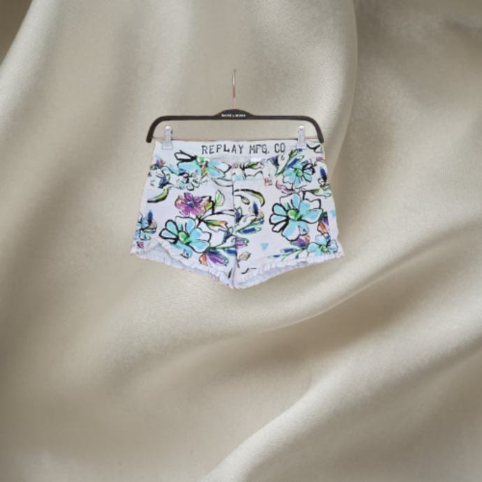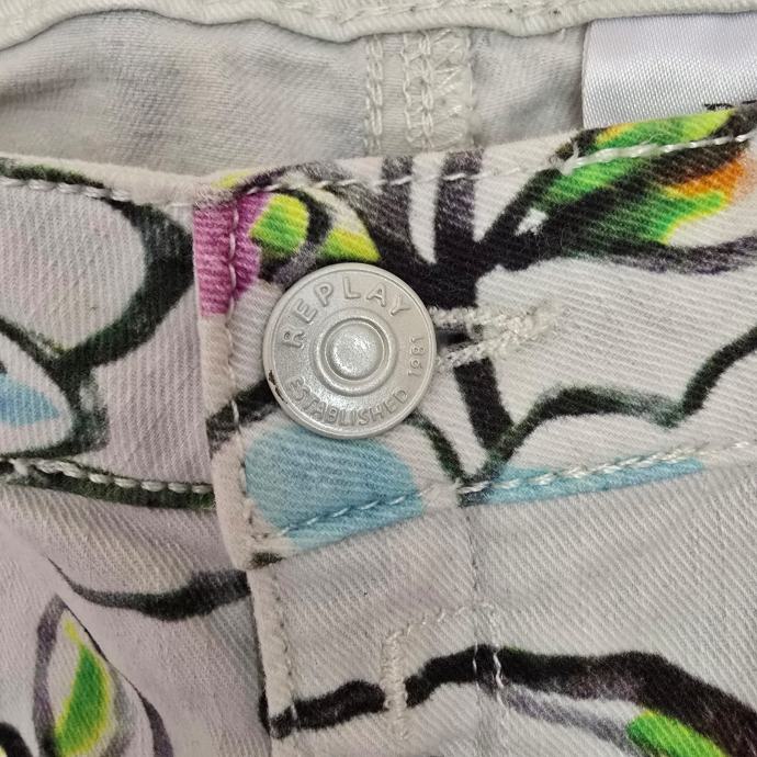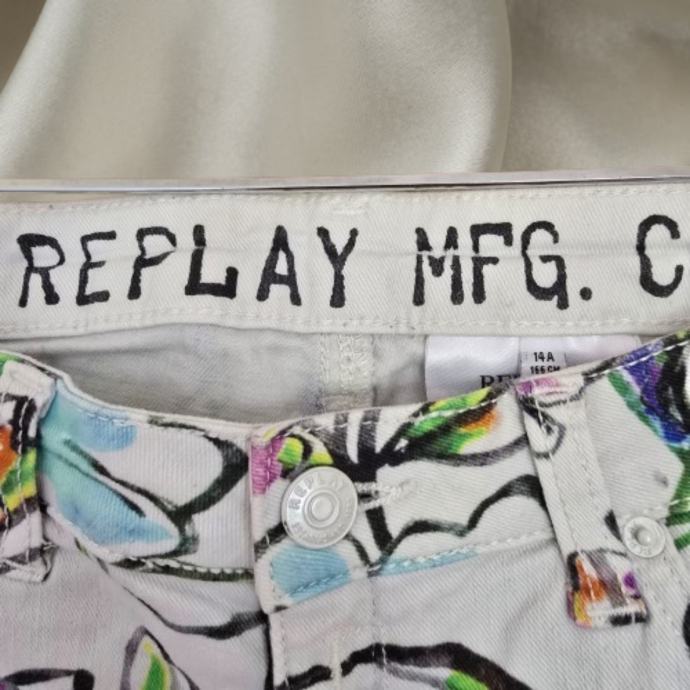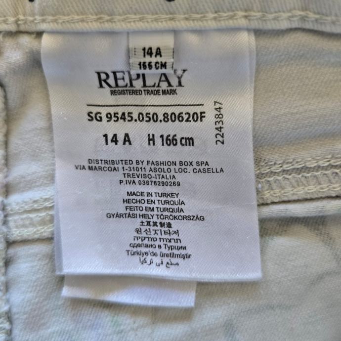 Također bi odgovarale odrasloj veličini XS. Dječje kratke traper hlače Replay veličina 14 godina-164 cm. Mjere su struk 35 cm, bokovi 42 cm, dužina 28 cm. Sastav je 96% pamuk, 4% elastin.