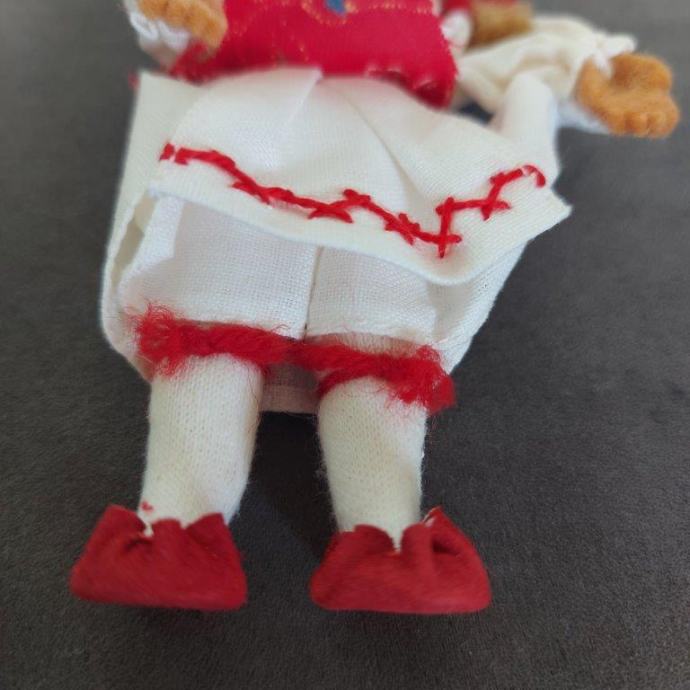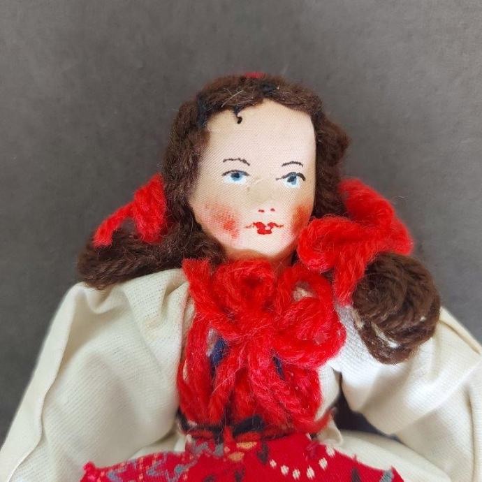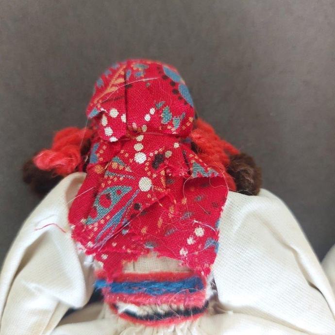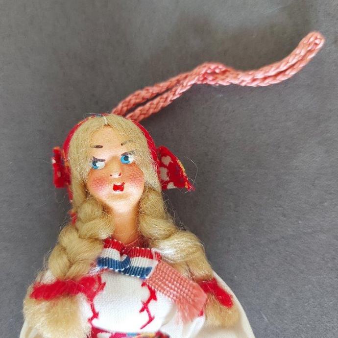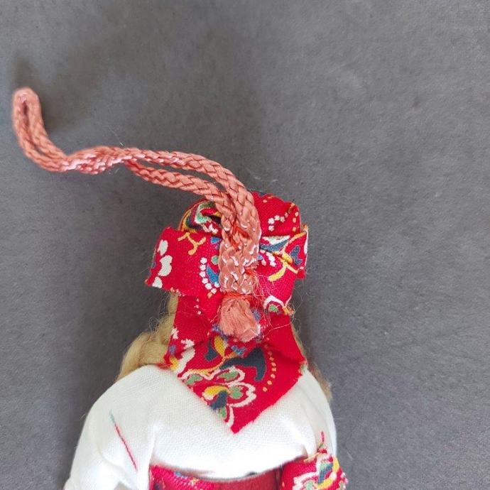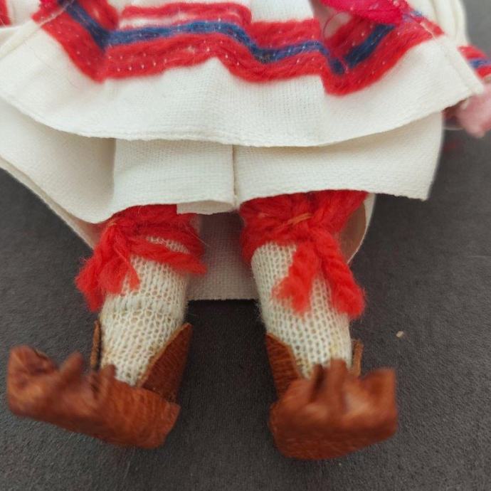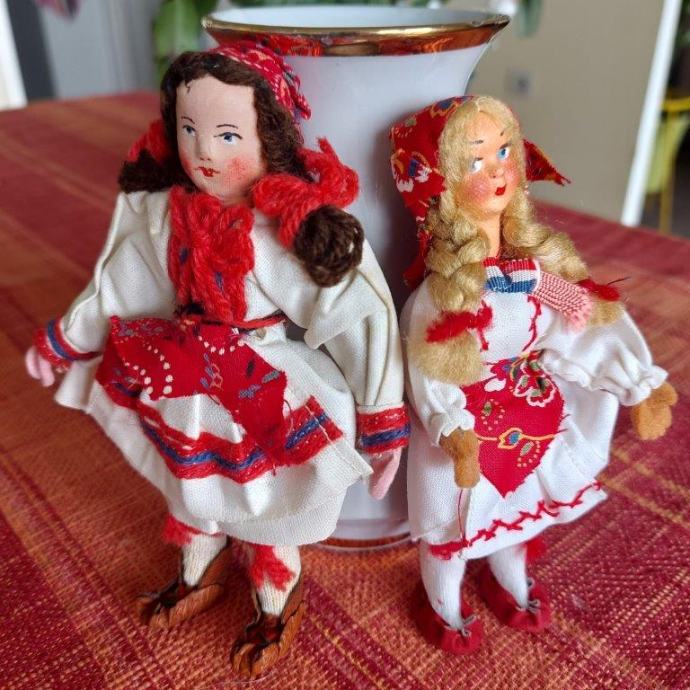 Dvije , ručno izrađene starinske lutkice u narodnim nošnjama, dobro uščuvane, visina 13 i 13,5 cm.