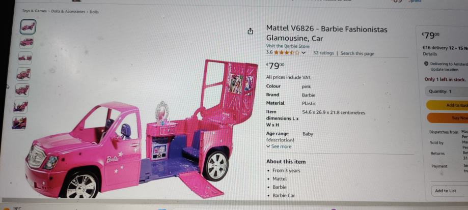 Barbie auto-glamouzina-veliki 20€ sniženo!! SAMO!! rezervirano