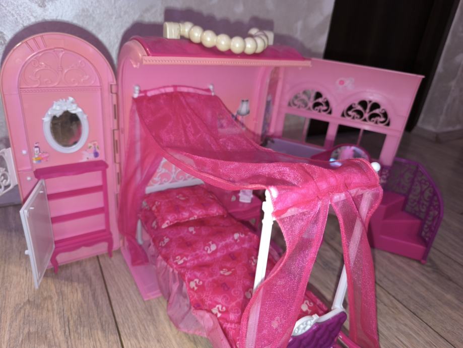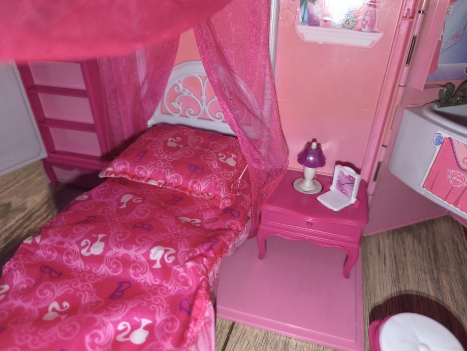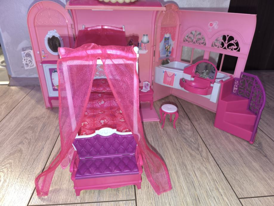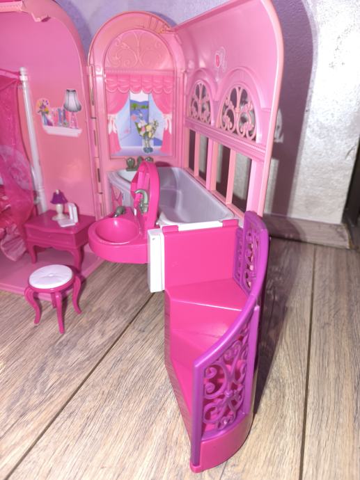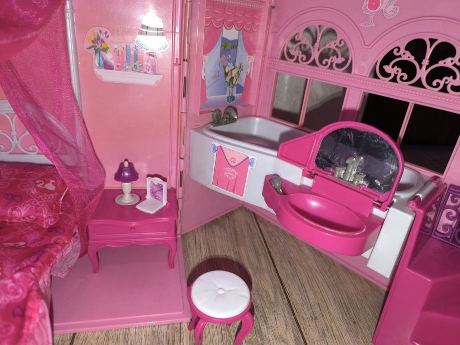 Prodajem Barbie Vintage kucicu Bed and Bath iz 1998. godine iz osobne kolekcije. Kuca je sklopiva i izgleda kao kofer koji kada se otvori ima veliki krevet s baldahinom, kadu te ostale dijelove sa slike.
