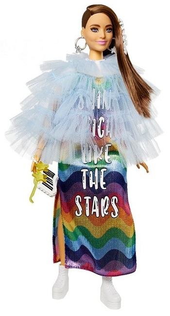 Barbie® Extra dolls rock bold fashions and bright colors, and they make big statements! Each Barbie® doll has their own unique style that’s playful and over the top. And their pets -- each different and all adorable -- have tons of personality, too! Barbie® Extra lets kids explore self-expression through style and offers an exciting fashion and styling play experience with posable dolls. They are all about having fun with fashion with glitter, gummy bears, emojis and stand-out hair -- bringing EXTRA vibes wherever they go. Each sold separately, subject to availability. Dolls cannot stand alone. Colors and decorations may vary.When it comes to fashion, Barbie® Extra dolls have a “more is more” attitude, featuring 15 pieces that include clothing and fashion accessories, as well as a pet and pet accessories.Barbie® doll is curvier than the original body, and her hairstyle goes big with long brunette hair styled straight with silvery bling hair clips.A fun and playful look showcases her confident style with a sparkly rainbow-patterned slip dress, with “Shine Bright Like the Stars” graphic message, layered over a white shirt and under a blue coat made of ruffled tulle.Barbie® doll’s accessories -- a keyboard-inspired clutch, silvery jewelry, star-shaped sunglasses and white platform kicks -- add personal expression and unexpected moments of storytelling fun.The pet crocodile figure is oh-so-EXTRA, too, with golden-plated teeth that read “sweet” and a lollipop treat!Barbie® Extra dolls make a great gift for kids 3 to 10 years old, especially those who love to be extra themselves!