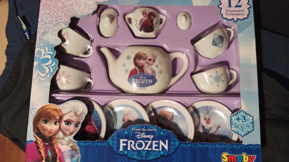 Uz Barbie na poklon dobivate Disney Frozen porcelain tea set proizvođača Smoby. Set je licencirani Disney proizvod. Sastoji se od 12 dijelova od pravog porculana oslikanih sa likovima iz popularnog animiranog filma. Izvrstan dodatak za igru sa lutkama za djevojčice. Stanje, veličina, detaljniji izgled i opis se vidi na priloženim slikama (zadnje 4 slike).