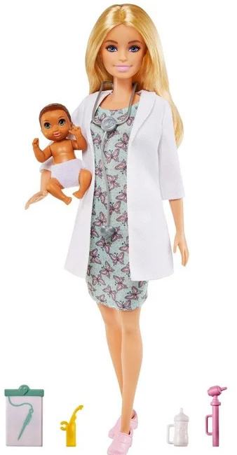 Let the young imagination be the doctor with Barbie Dolls doctors and play games.The Barbie Doctor doll is ready to see patients with a review table, accessories for patient care and two adorable babiesYour Office set does double work with a care station that includes two buckets, a cell phone, and storage space.Theme accessories include a stethoscope, two baby towels, a bottle and a medical chart