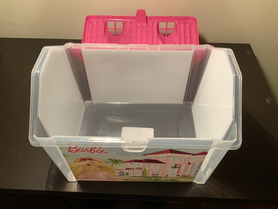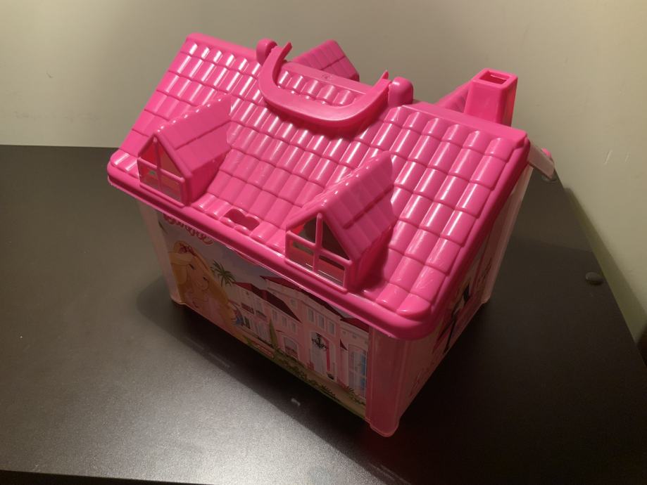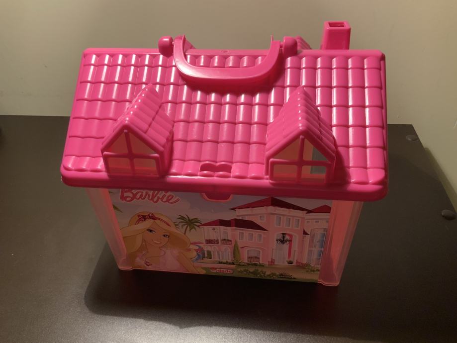 Prodajem Barbie kutiju kofer u obliku kuće za pohranu Barbie odjeće, obuće i slično. Ima ručku za nošenje.