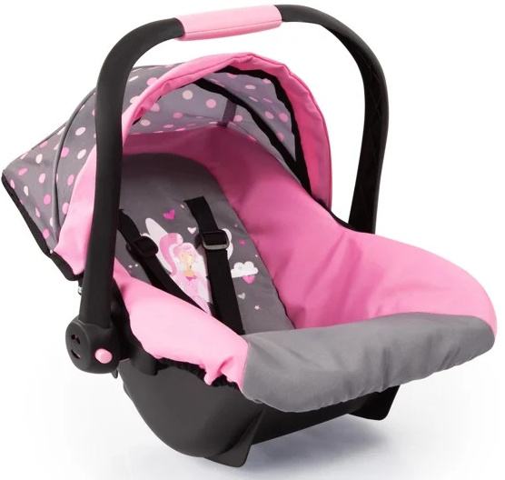 This modern dolls car seat has a very fashionable colour. The beautiful car seat is suitable for dolls up to 46cm. With its wonderful fabric and its integrated sunshade, the doll or plush toy sits comfortably and is protected from sun and wind in the face. Thanks to its integrated seat belt, the doll or the plush toy is secured from falling and has sweet dreams while travelling. The ergonomic handle is comfortable to carry, thus it is easy to carry the doll or the plush everywhere you want. It is also possible to mountain the doll’s car seat on the Neo Vario doll’s pram. The doll’s car seat is suitable for children 3 to 6 or 7 years old. Measurements (cm): 42 x 33 x 37