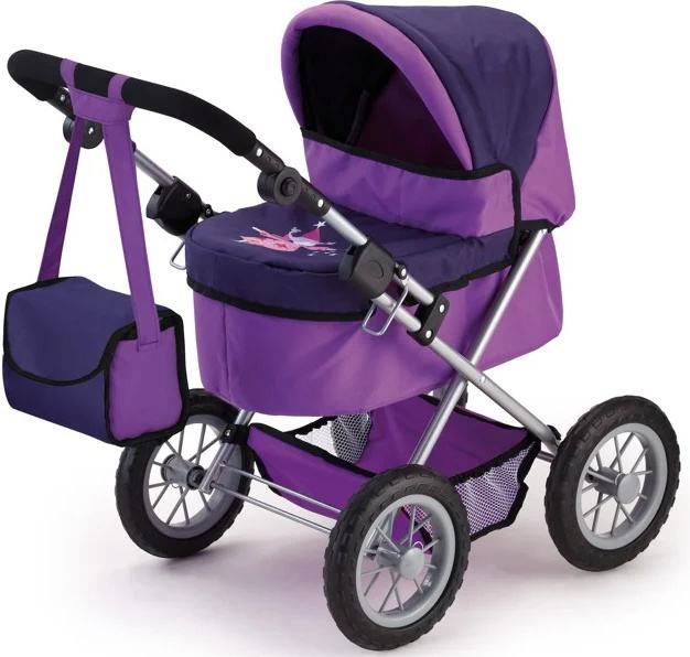 Trendy is a beautiful doll's pram, in fashionable colours and is suitable for dolls up to 46 cm. With its adjustable handle, this pram is already suitable for the smallest girls, and will grow with them. With its four big wheels it is suitable also for uneven grounds. Furthermore the pram can be folded up quickly for transportation. Conveniently, the integrated shopping basket can store everything, which is needed for a trip with the doll's mum and her little darling. Handle height (cm): 39-68, Measurements (cm): 67 x 41 x 68