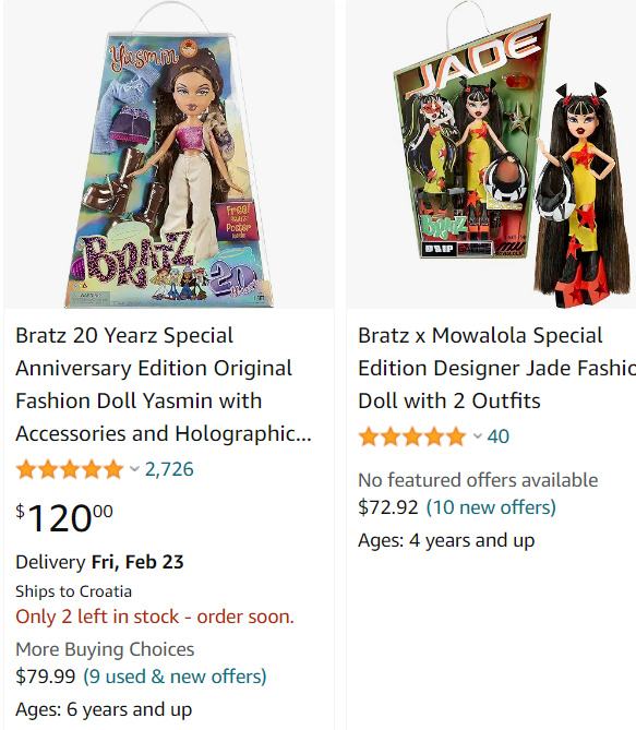 Uz njih dobivate bratz češalj i ostalu odjeću i bratz stvarčice i druge stvarčice kao dodatak i to za sveukupno 40 eura.