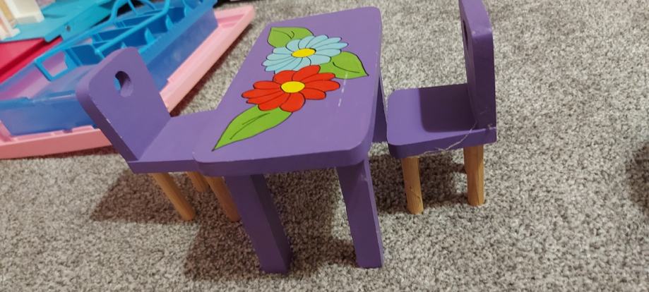 Dimenzije stola 18.5x10.5x9cm + 4 stolice. Drvo.