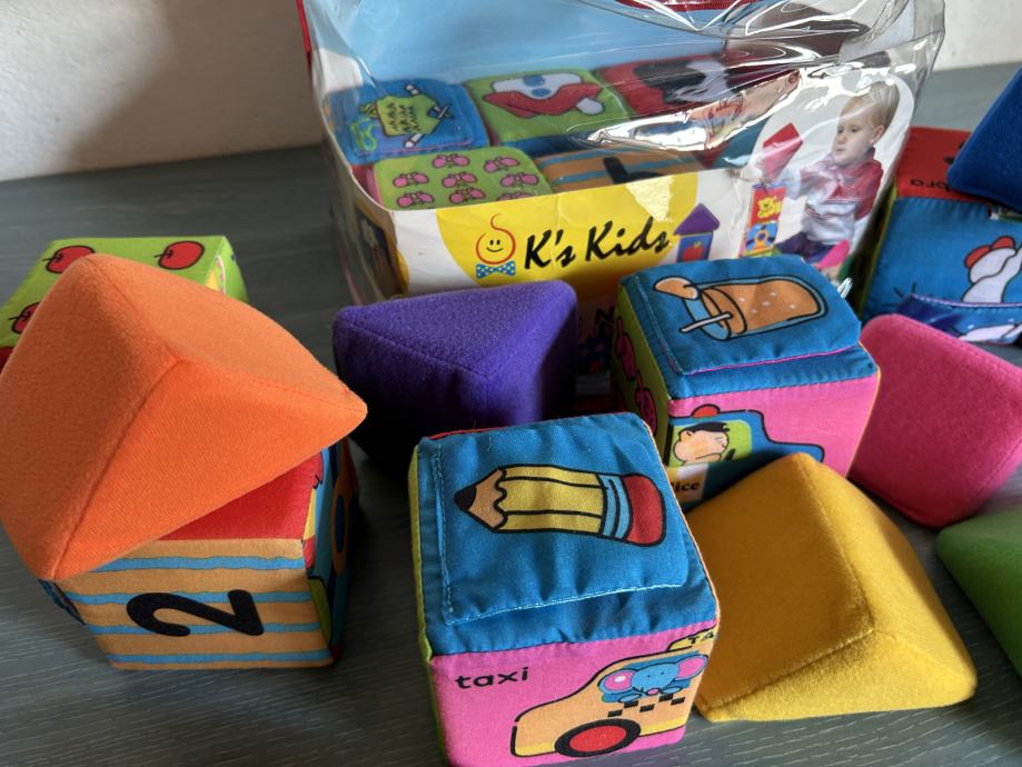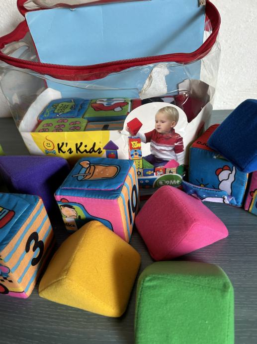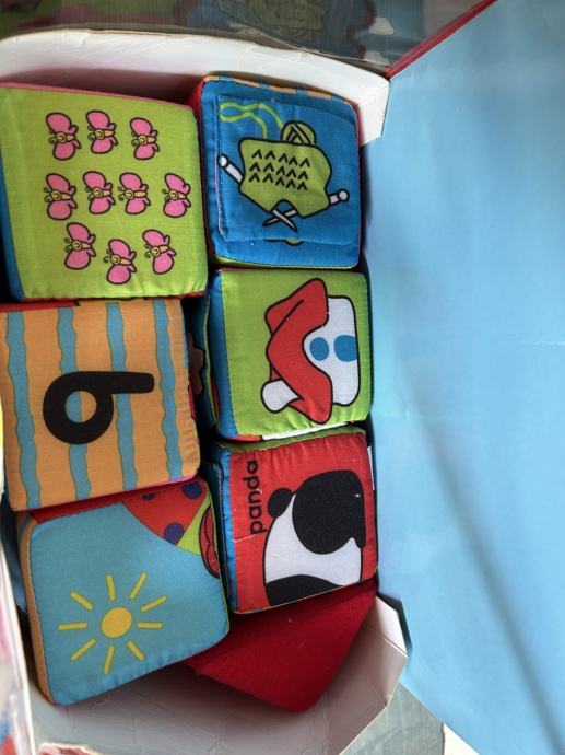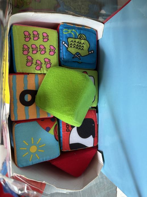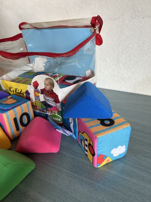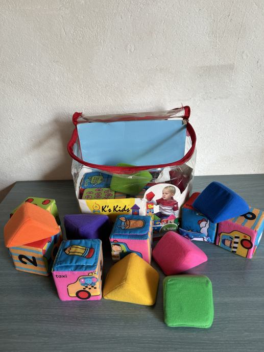 Igračka je edukativnog karaktera, mekane kocke za slaganje raznih oblika, u super stanju, perivo
