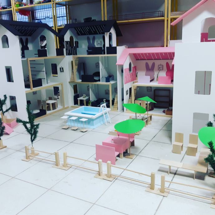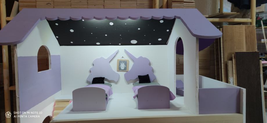 Kućice su pravljene od medijapana 10mm i punog drveta farbanog prirodnim bojama.