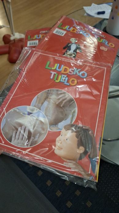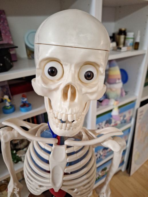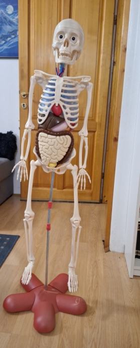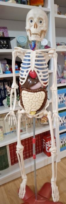 Dijelovi za slaganje (kostur s organima sastavljen kao što je prikazano na slici, mišići i glava se mogu sastaviti). Dolazi sa stalkom koji je popravljan i knjižicama s opisima dijelova tijela.