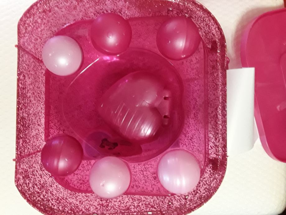 Lopta je otvorena, samo je otvorena školjka. Ostale sve loptice neotvorene. Samo je pogledano i vraceno u loptu. Sve nono, kao iz ducana,
