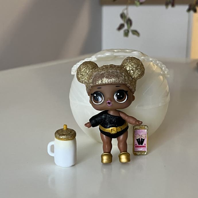 Lutka i dodaci, šljokice na lutki malo izblijedile od korištenja.