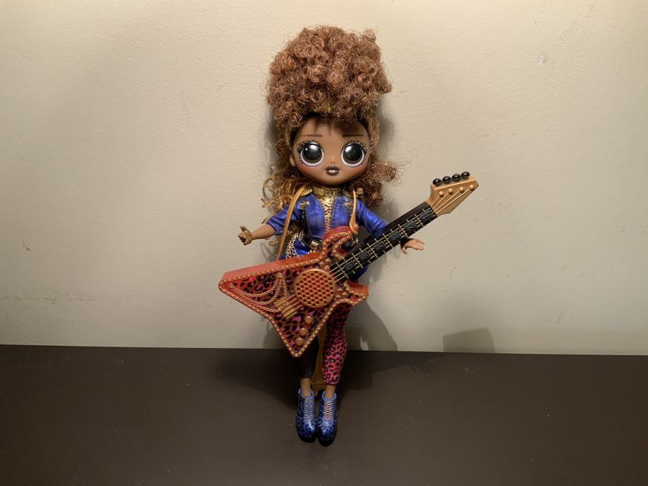 Prodajem LOL surprise OMG Remix Rock Ferocious lutku sa bas gitarom. Bas gitara ima baterije i 6 melodija. Visina lutke je 25 cm.