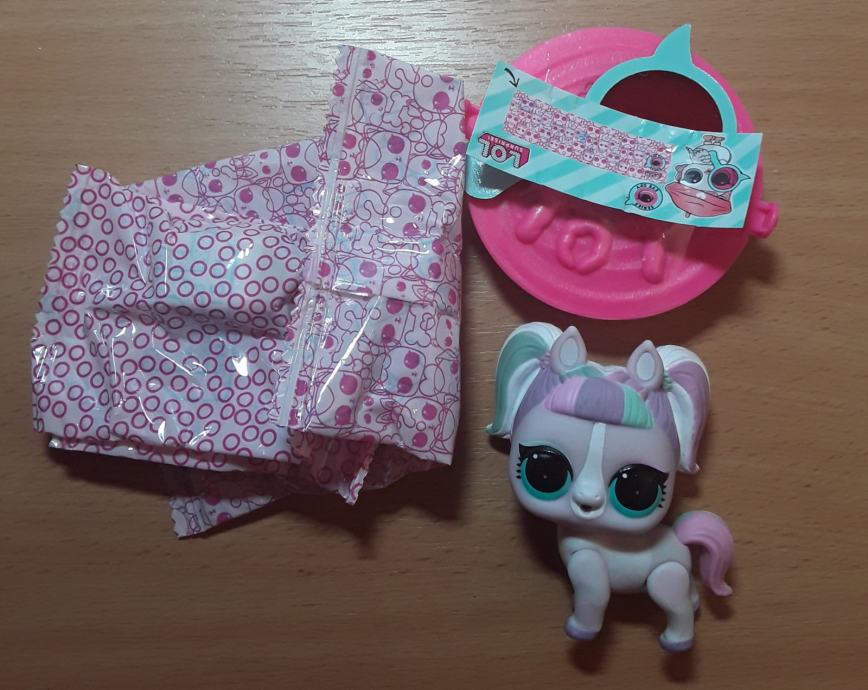 Otvorena samo lutka da se vidi koji je konjić. Svi paketići neotvoreni, pijesak neotvoren.
